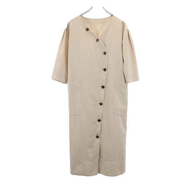 TOGA トーガ 日本製 ノーカラーコート M ブラウン系 2WAY襟 レディース