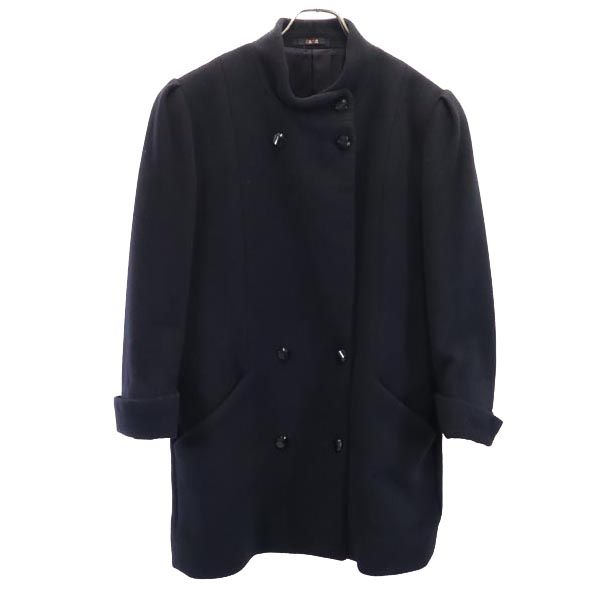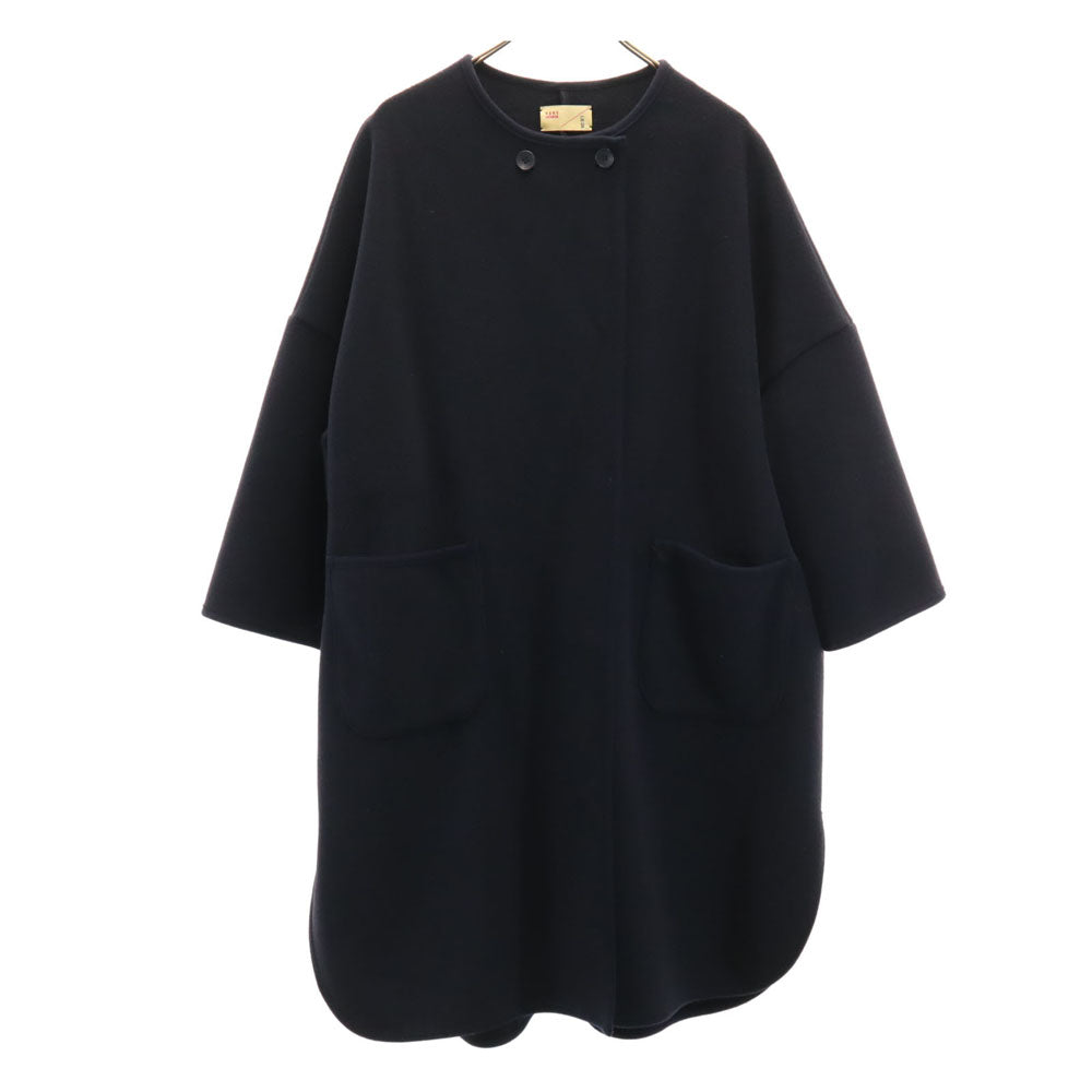 LACOSTE ラコステ ウールブレンド ノーカラーコート 38 紺 レディース