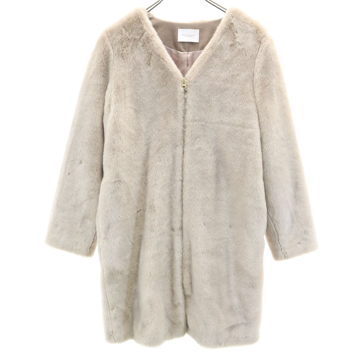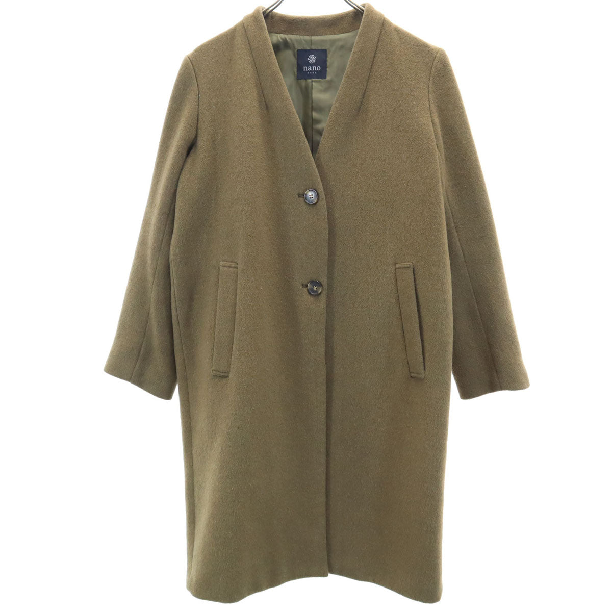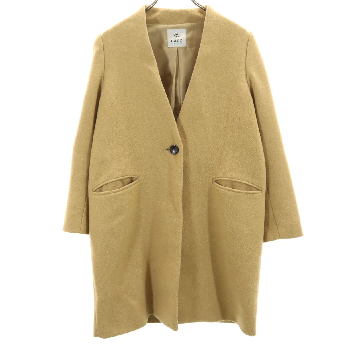 FONCE フォンセ ウールブレンド ノーカラーコート 36 キャメル レディース