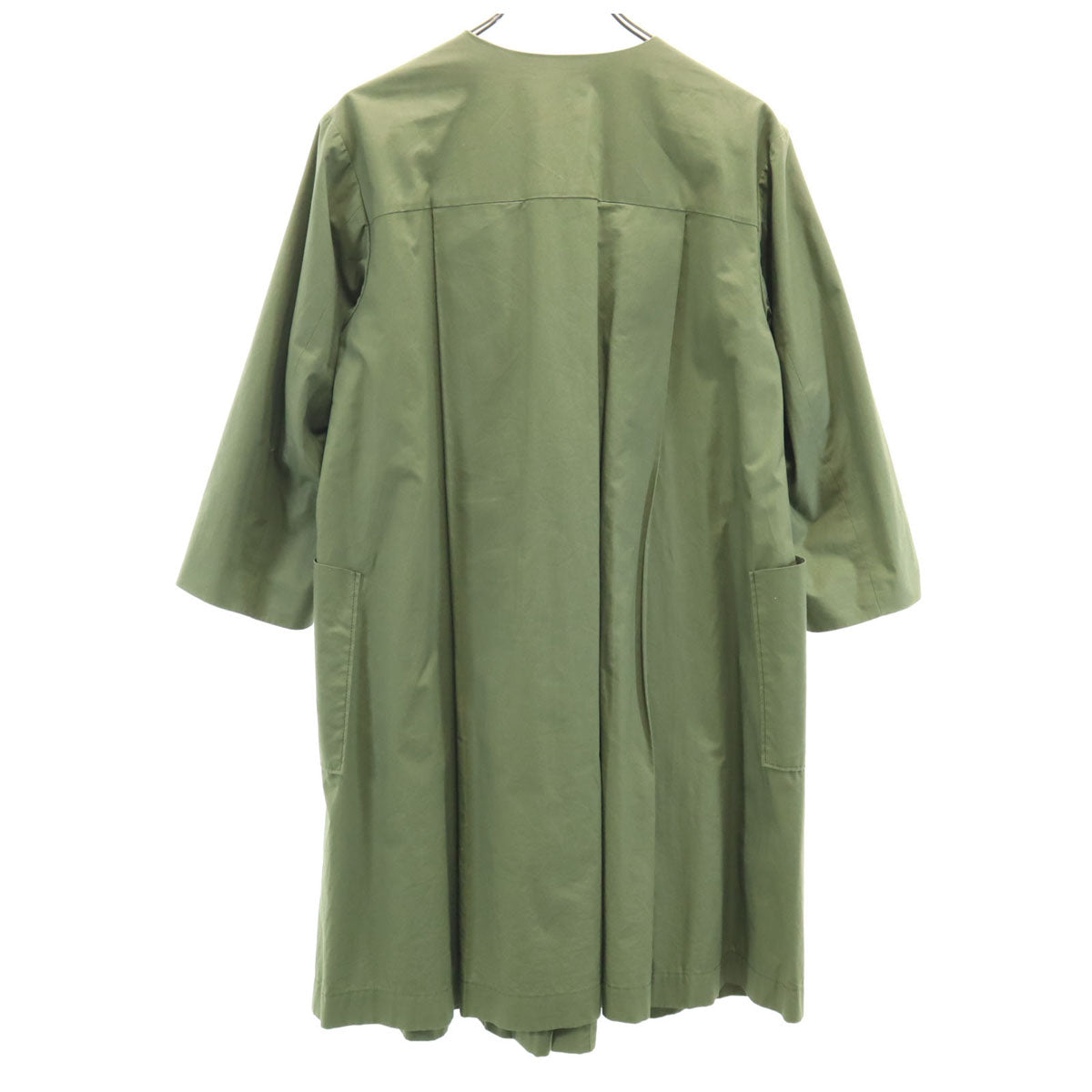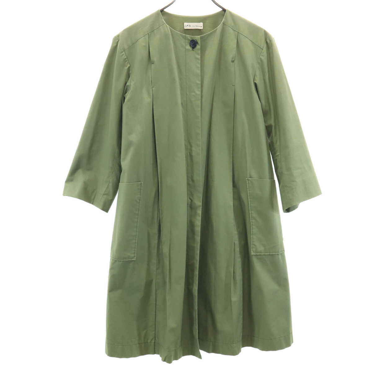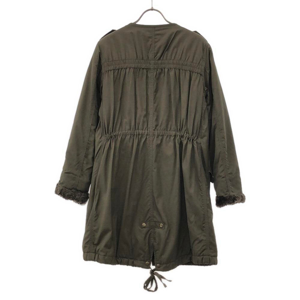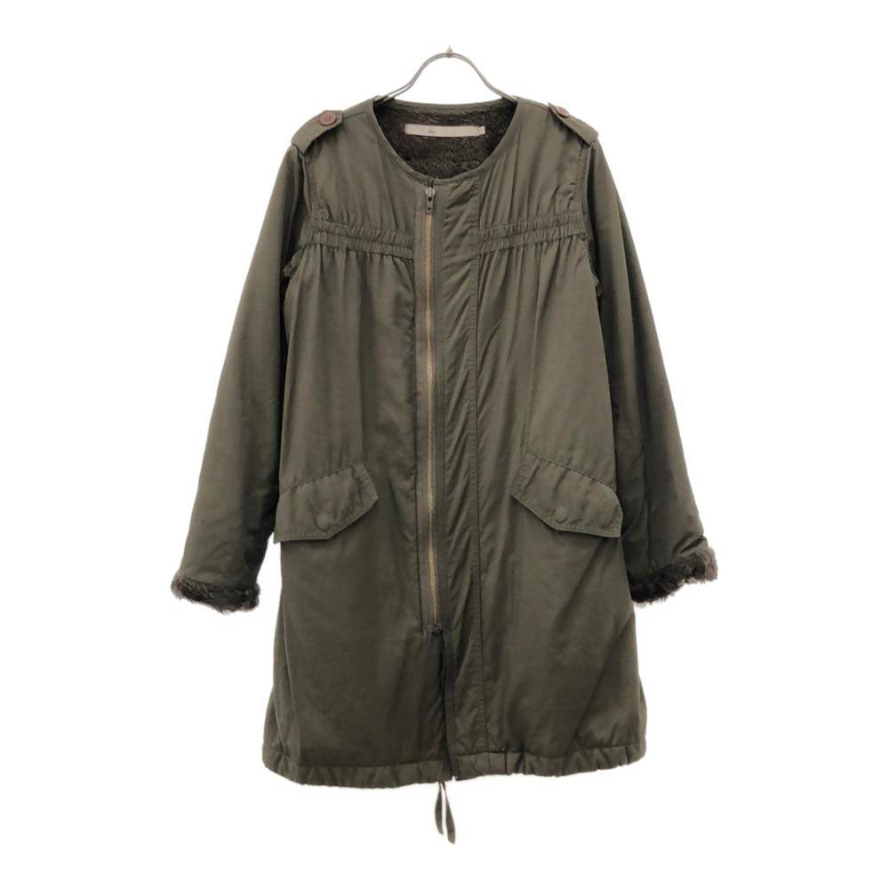 切替 ノーカラーコート アイボリー×カーキ 裏ボア レディース