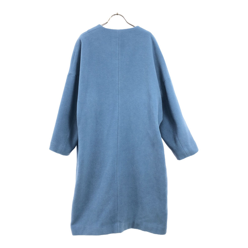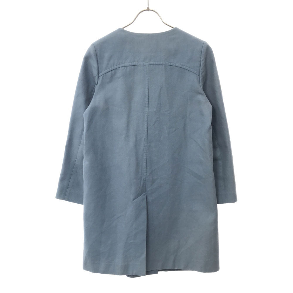 Chloe クロエ フランス製 ノーカラーコート 36 くすみライトブルー系 比翼 レディース