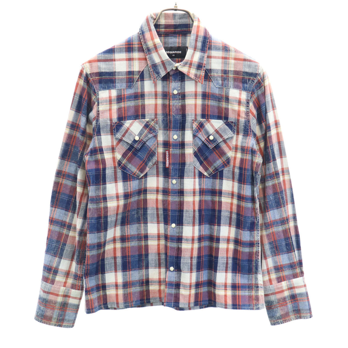 DSQUARED2 ディースクエアード イタリア製 チェック 長袖 シャツ 44 紫×茶 メンズ