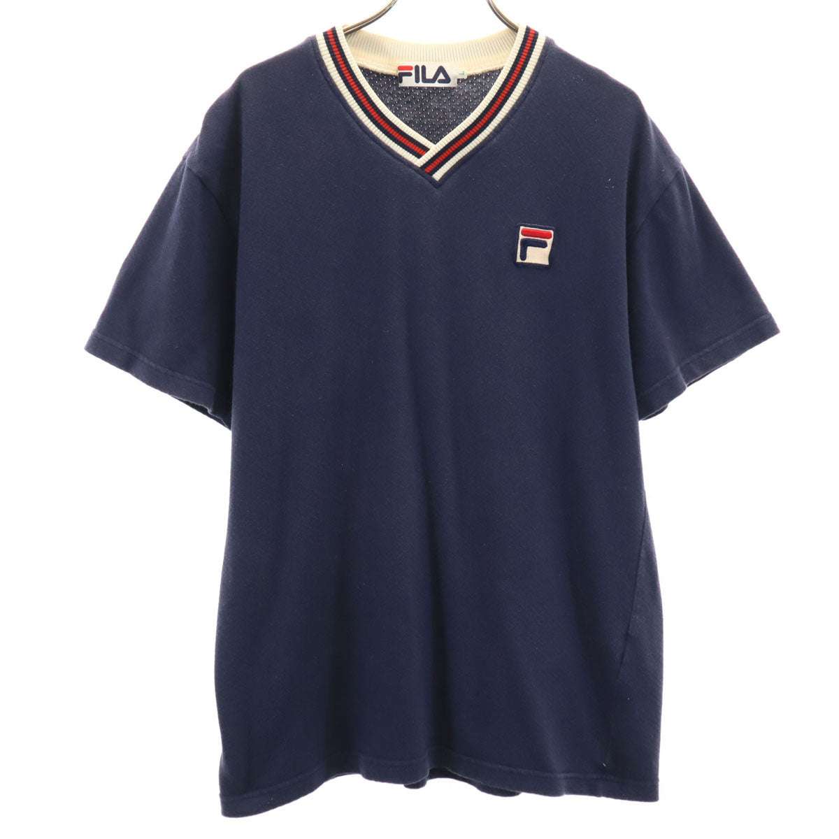 FILA フィラ 90s オールド 長袖 Vネック Tシャツ L ネイビー ロンT メンズ