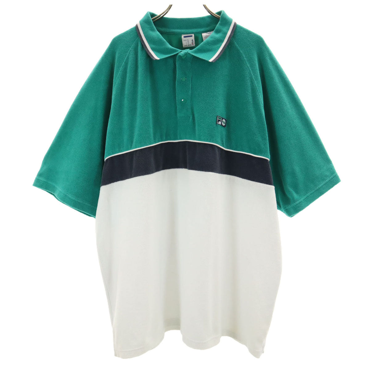 FILA フィラ ロゴ 刺繍 半袖 ポロシャツ L グレー 鹿の子 メンズ
