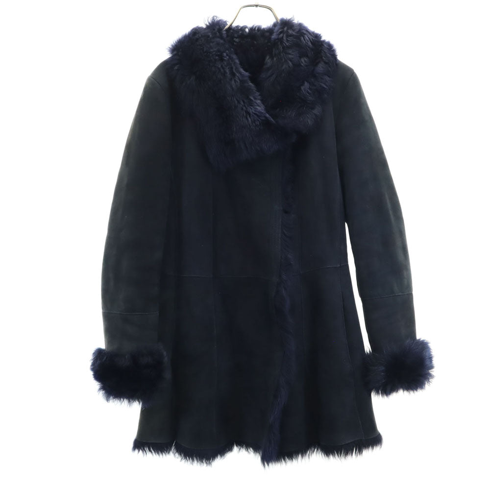 ムーンバット イタリア製 シャーリング加工 ムートンコート 46 チャコールネイビー レディース