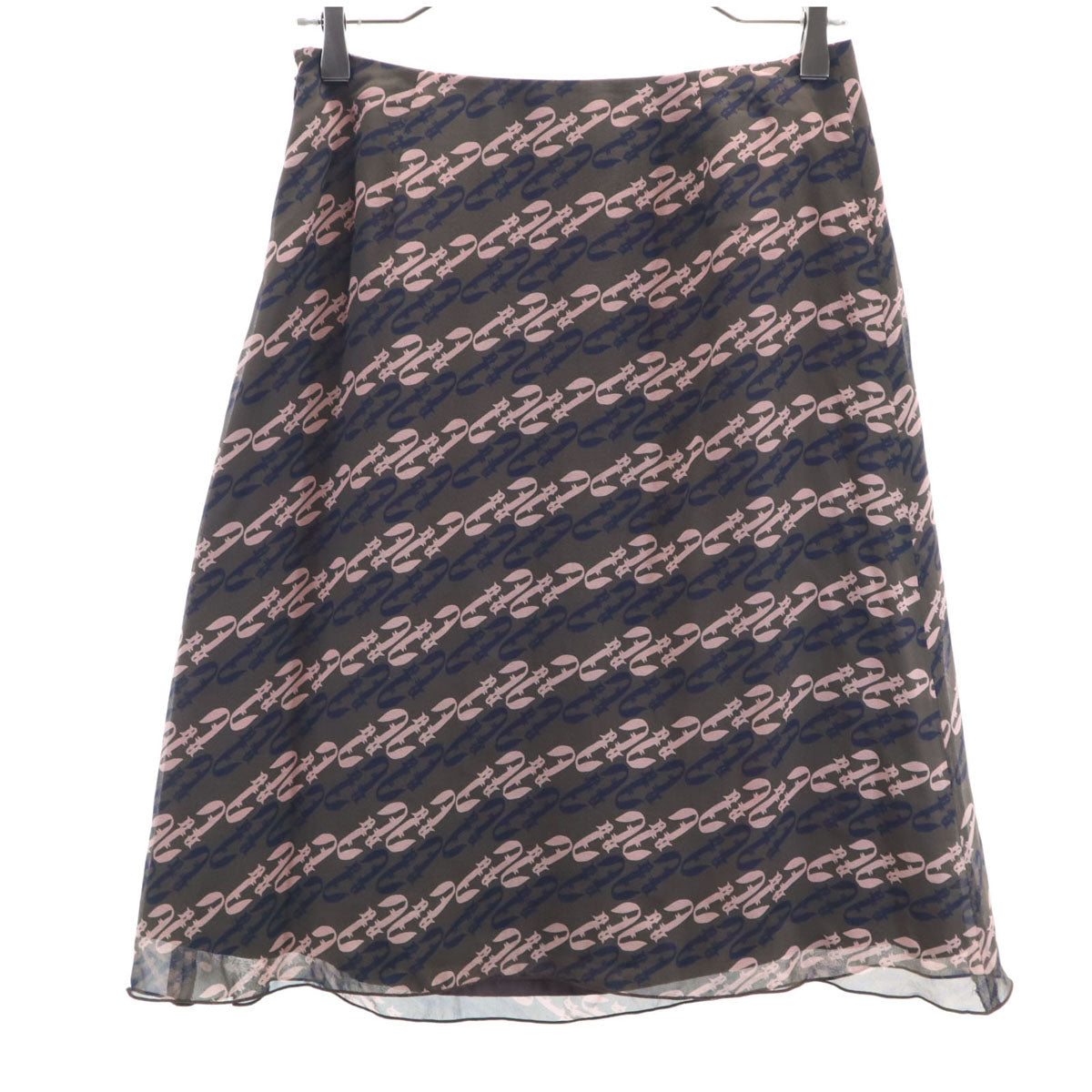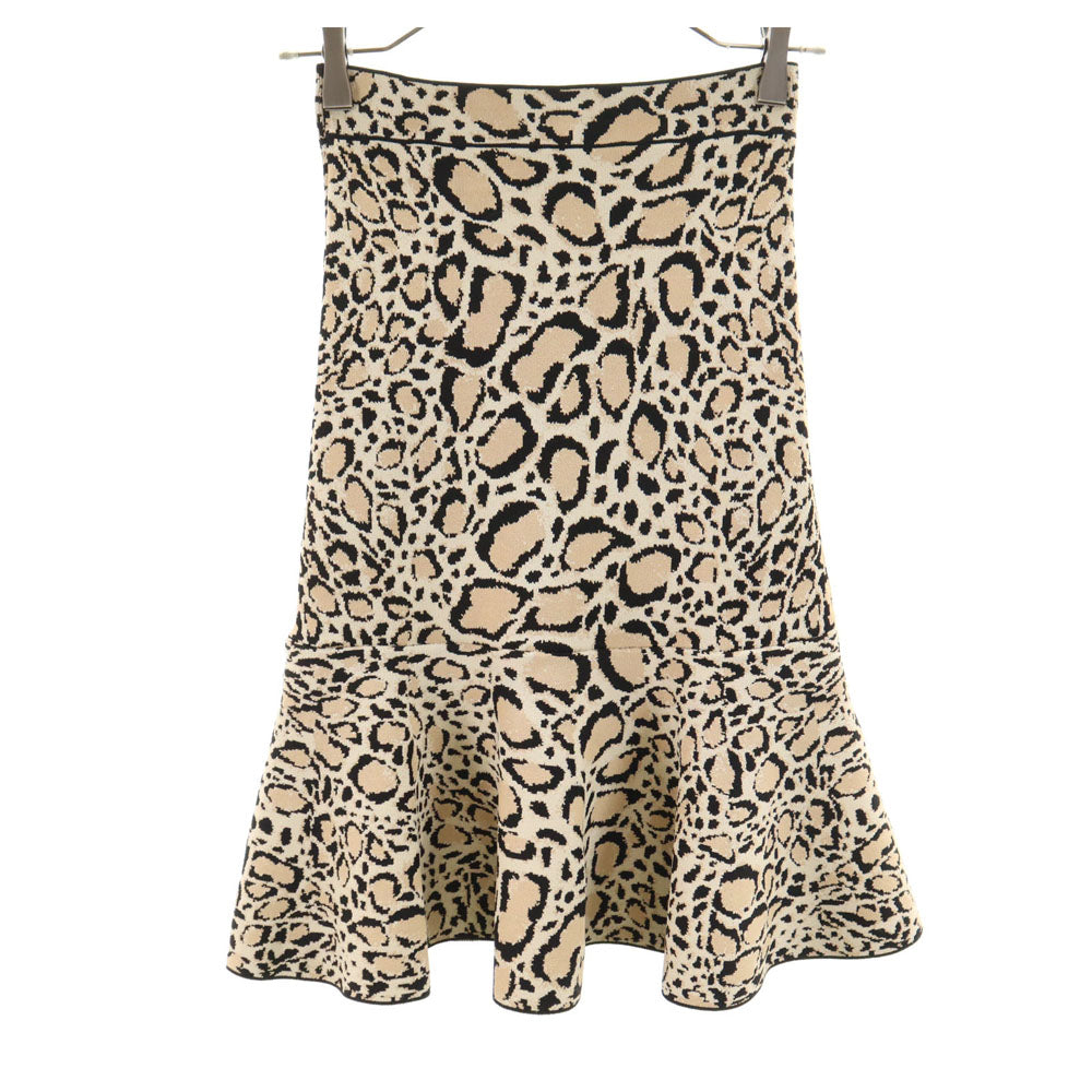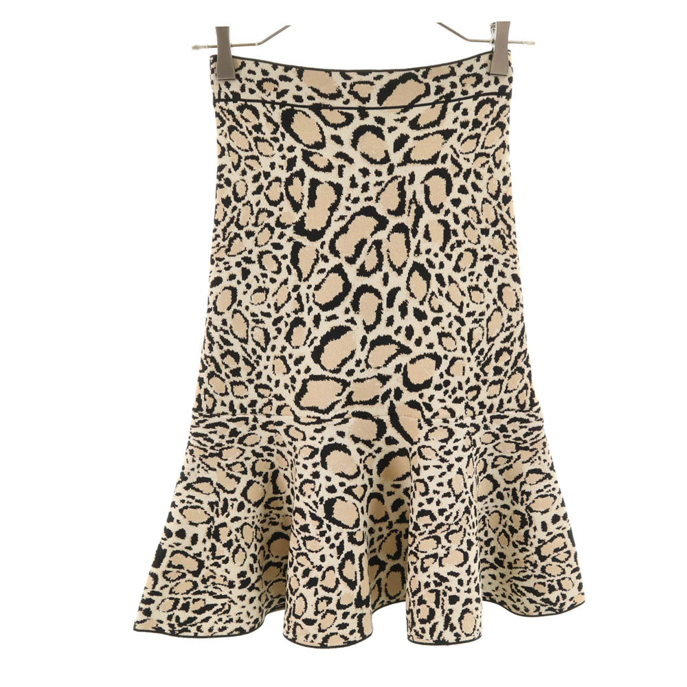 美品 Leilian レリアン 日本製 総柄 膝丈スカート 13+ ブラウン レディース