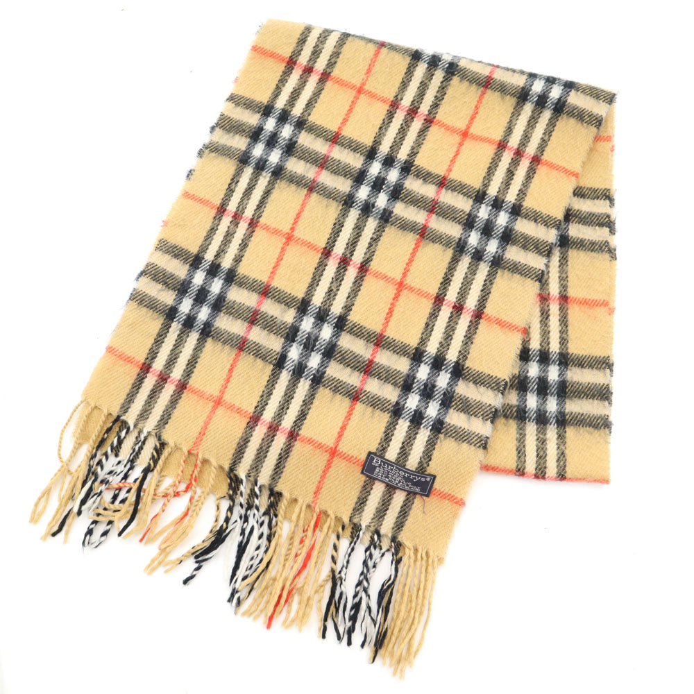 Burberrys バーバリーズ カシミア チャック柄 マフラー ベージュ系 フリンジ メンズ