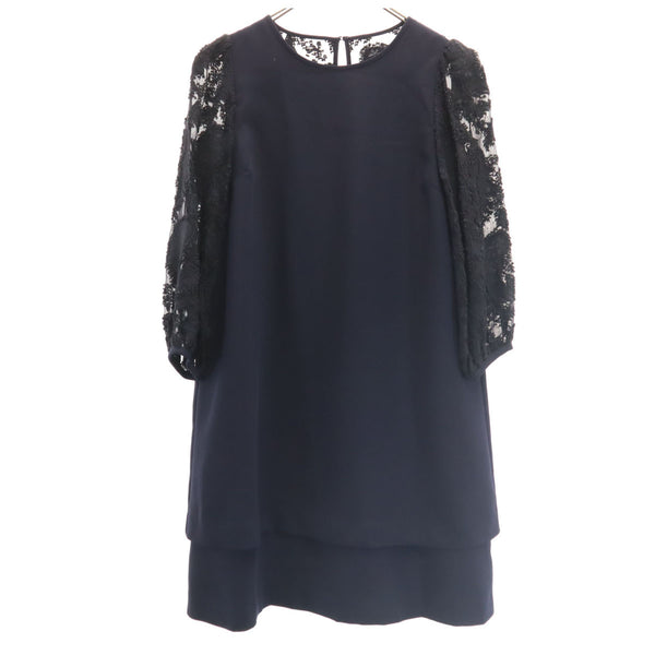 FOXEY フォクシー 日本製 ウール 7分袖 膝丈ワンピース 40 黒系 レディース