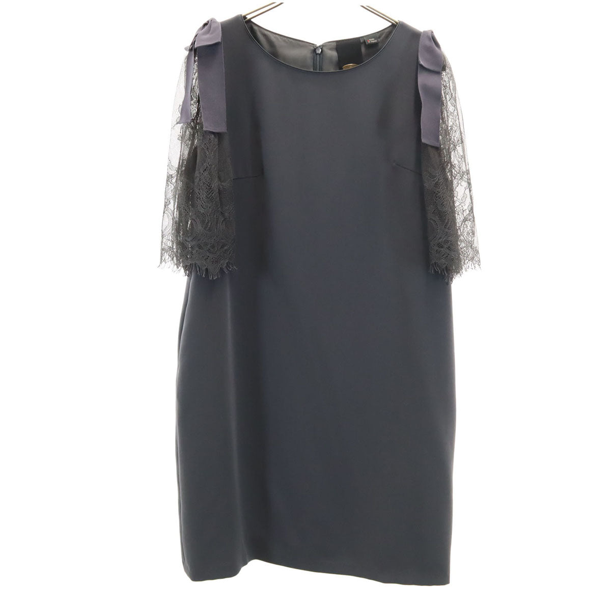FOXEY フォクシー ウール 長袖 切替 ワンピース 38 グレー系 レディース