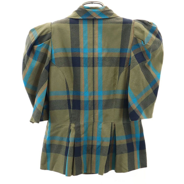 CELINE セリーヌ フランス製 シルクブレンド チェック柄 半袖 シャツ 42 グレー レディース