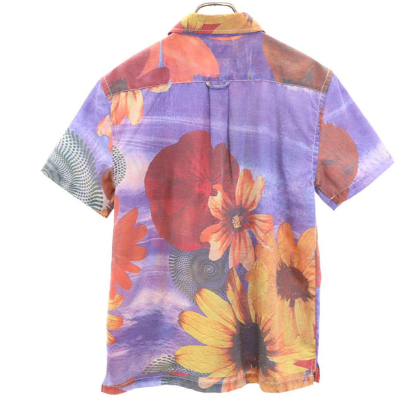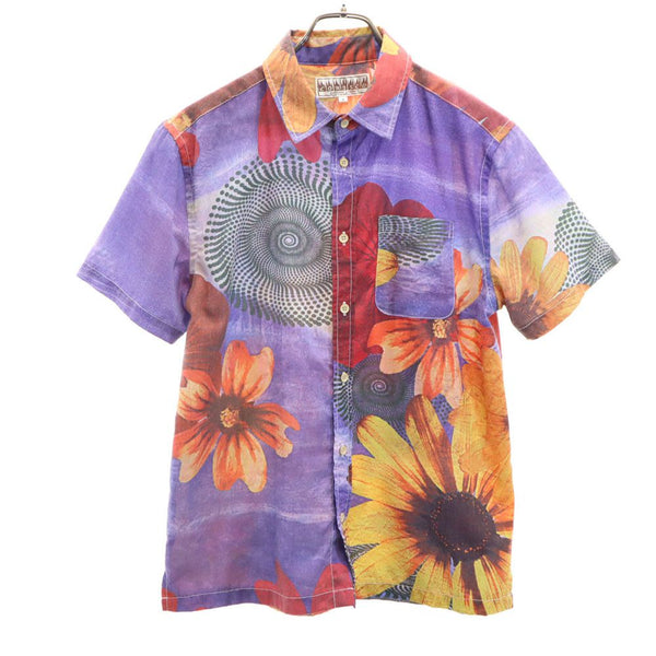 Protocol 90s オールド 総柄 半袖 開襟 アロハシャツ M ネイビー メンズ
