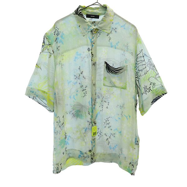 Denime ドゥニーム 総柄 半袖 シャツ グリーン メンズ