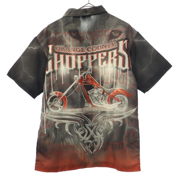 バック 刺繍 半袖 ワークシャツ 黒 メンズ