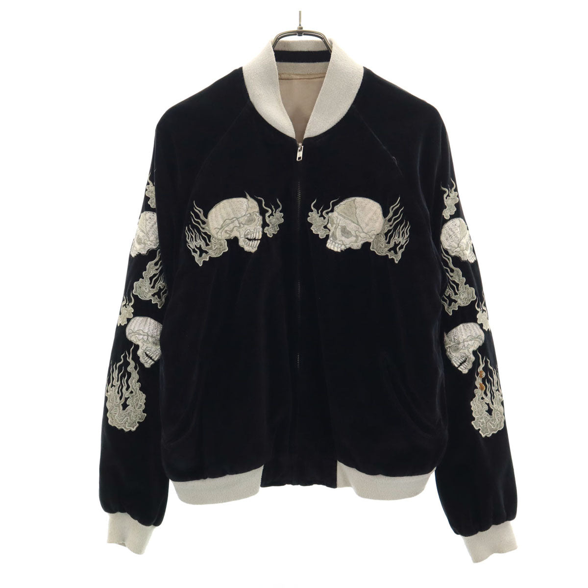花旅楽団 花柄 リバーシブル スカル刺繍 スカジャン XL ブラック系 メンズ