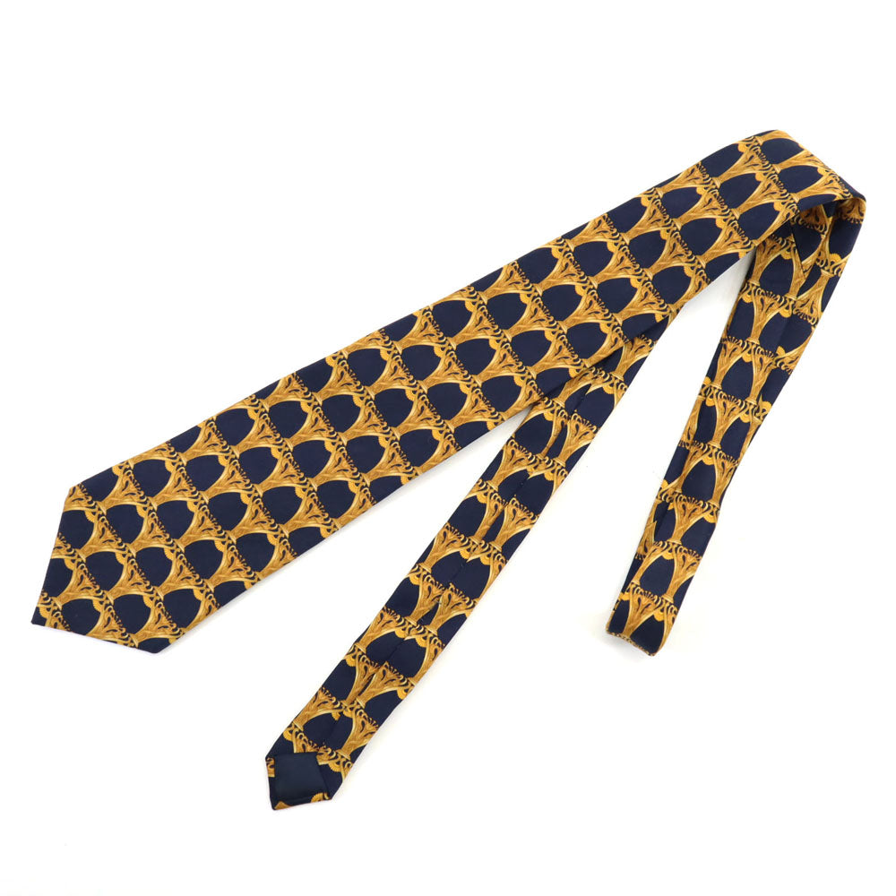 LANVIN ランバン シルク 総柄 ネクタイ ネイビー系 メンズ