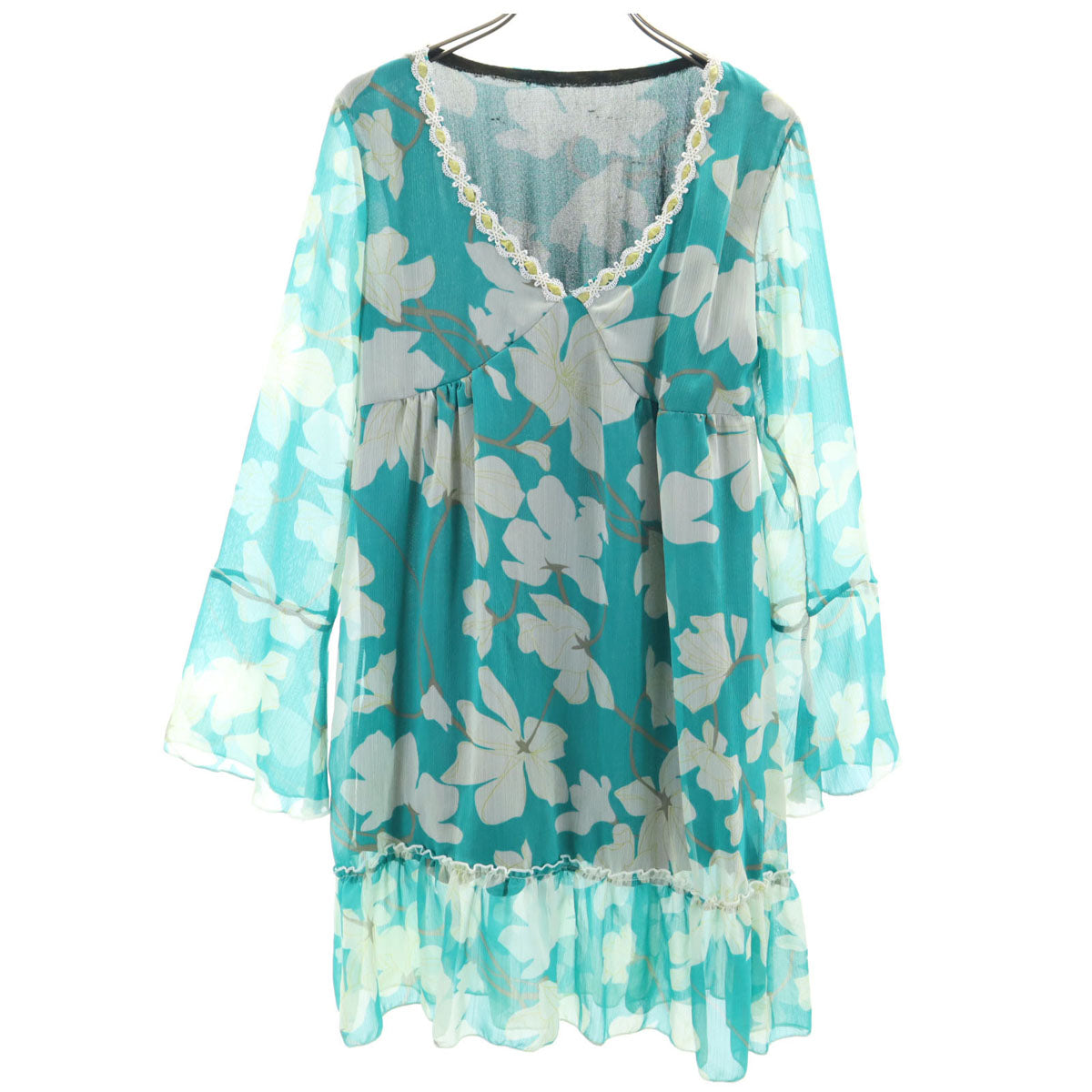 ICHIOKU イチオク 総柄 長袖 シフォン チュニック グリーン系 レディース