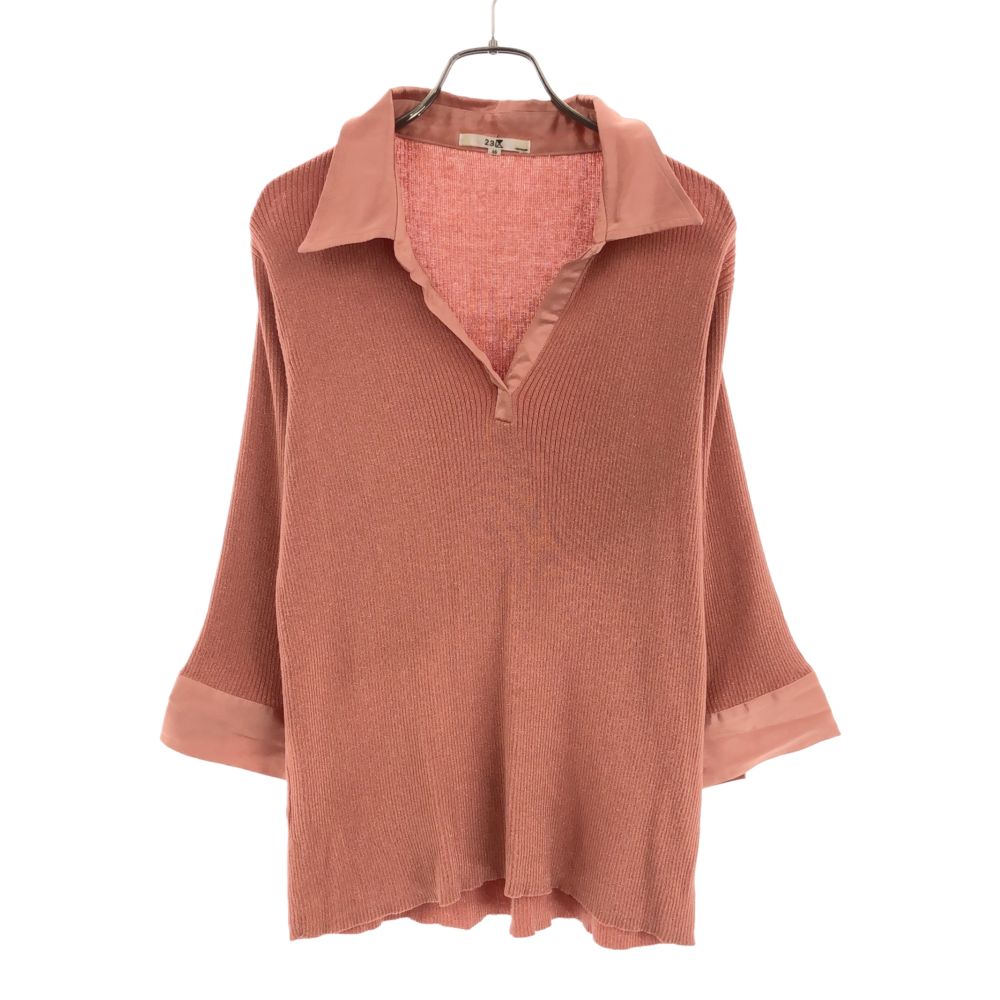 45アールピーエム 7分袖 ポロシャツ 2 レッド 45rpm 鹿の子地 レディース