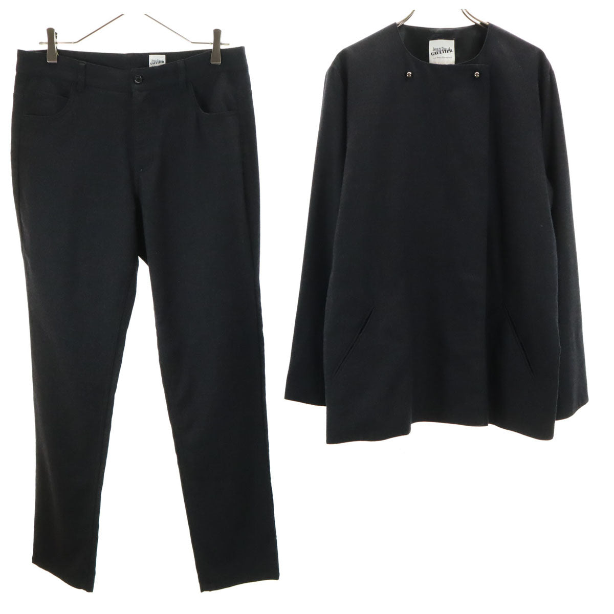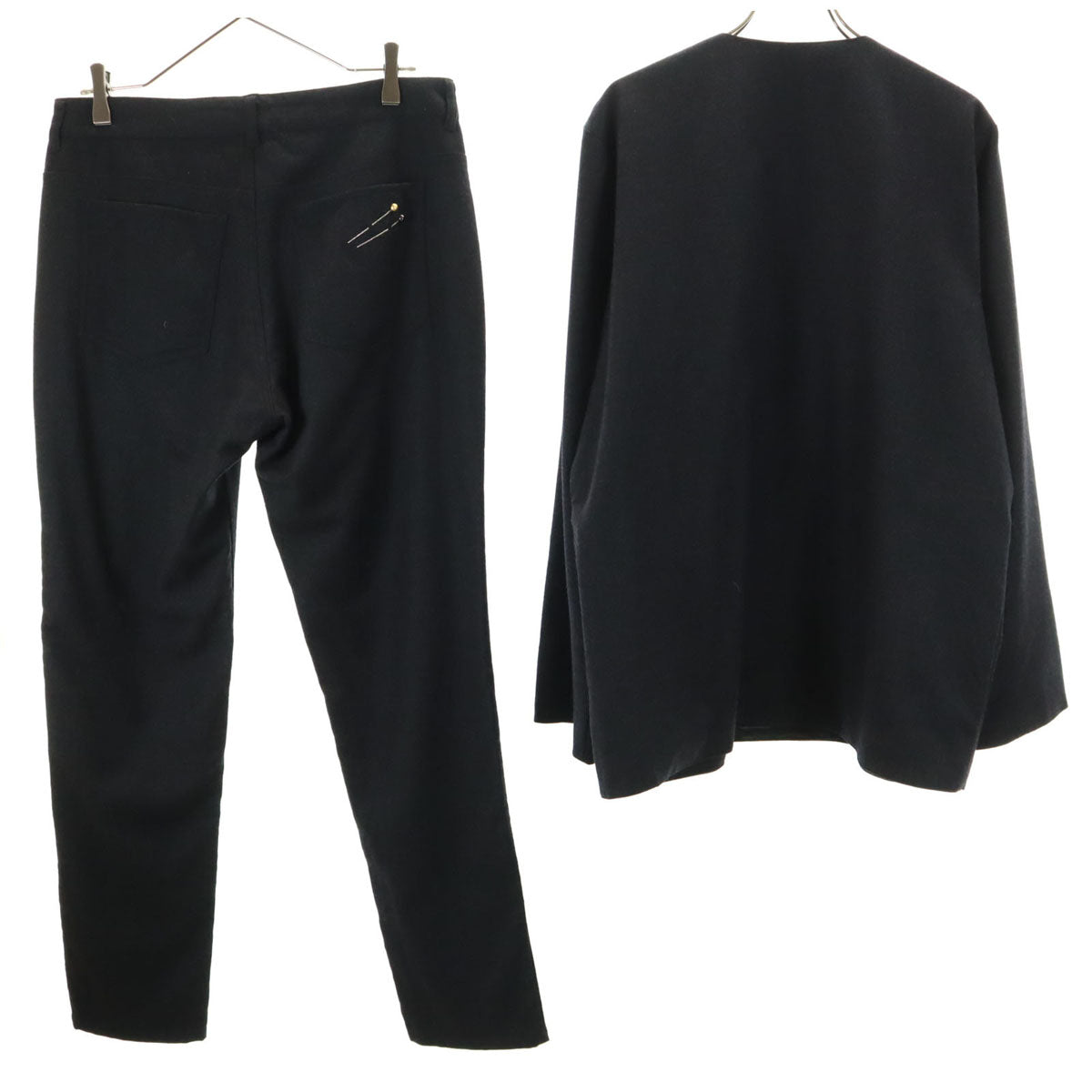 ARMANI アルマーニ イタリア製 ノーカラー ウールジャケット 44 ブラック レディース
