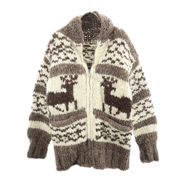 VINTAGE ヴィンテージ 80s カナダ製 ヴィンテージ ウール カウチンジャケット ブラウン系 ニット メンズ
