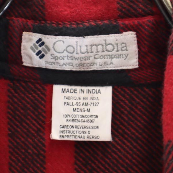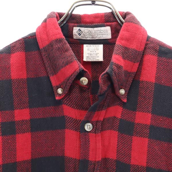 Columbia コロンビア 80s チェック柄 長袖 ボタンダウンシャツ M 赤×黒 ネルシャツ アウトドア メンズ