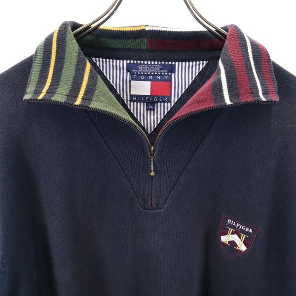 トミーヒルフィガー 90s オールド 長袖 ハーフジップ ニット L ネイビー系 TOMMY HILFIGER セーター メンズ
