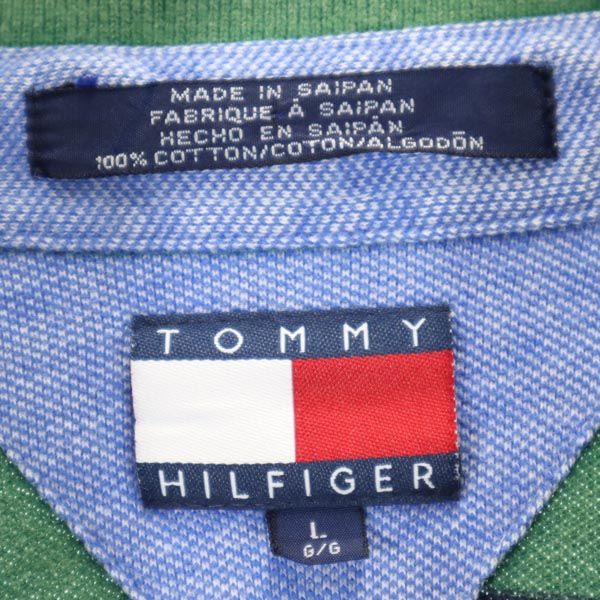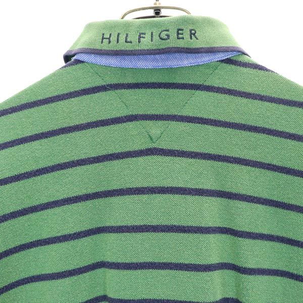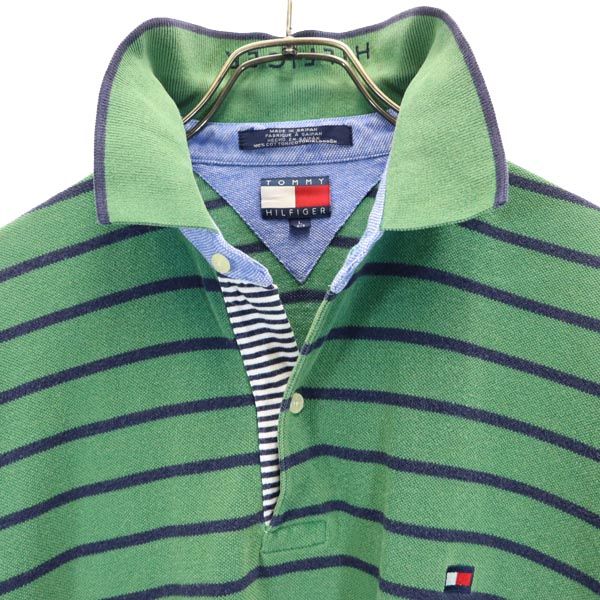 TOMMY HILFIGER トミーヒルフィガー 90s オールド フラッグタグ ボーダー 半袖 ポロシャツ L グリーン系 鹿の子 メンズ