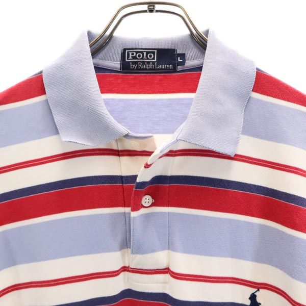 Polo by Ralph Lauren ポロバイラルフローレン 90s オールド ボーダー 半袖 ポロシャツ L ブルー系 メンズ