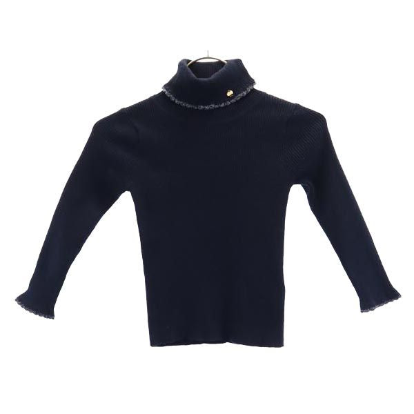 Kate Spade ケイトスペード タートルネック 長袖 リブ ニット 110 ネイビー系 ロゴ キッズ