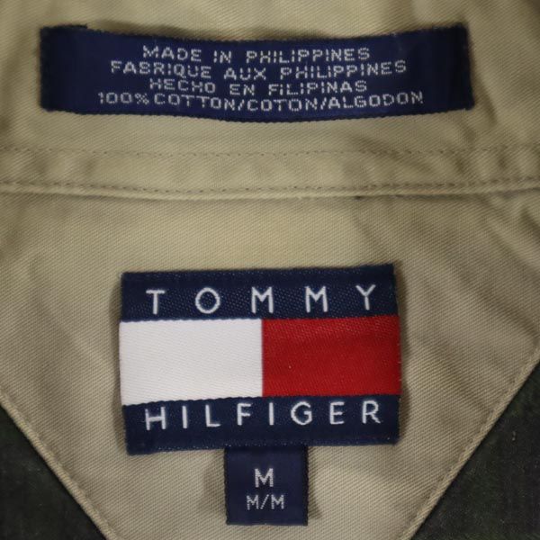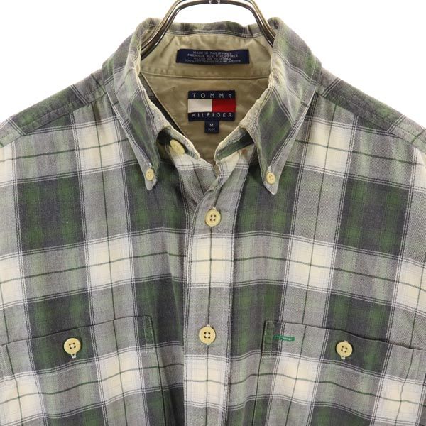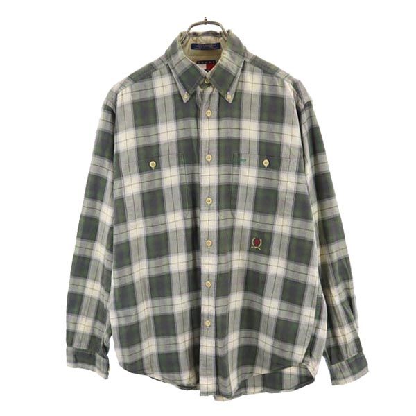 TOMMY HILFIGER トミーヒルフィガー 90s オールド フラッグタグ チェック柄 長袖 ボタンダウンシャツ M カーキ系 メンズ
