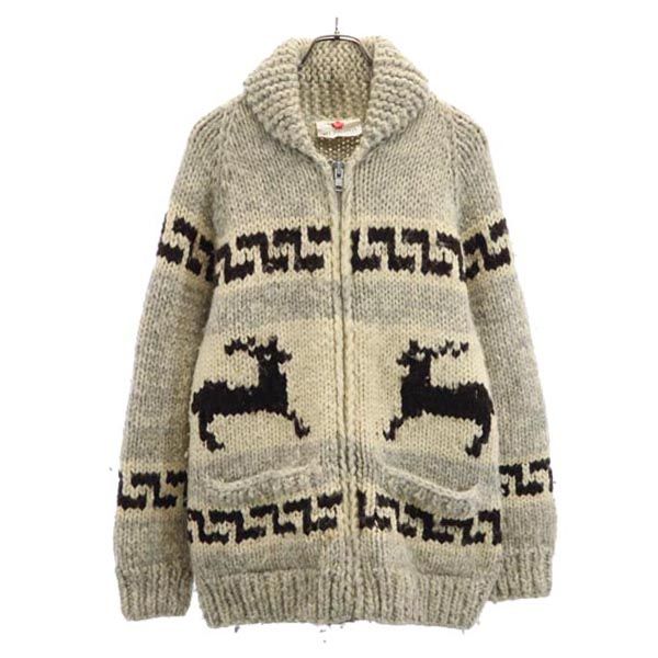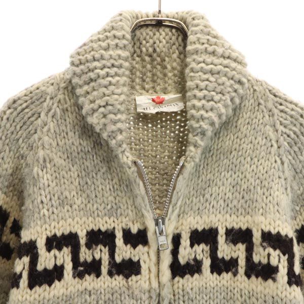 オールカナダ 90s オールド カウチン 長袖 ニットジャケット グレー系 ALL CANADA メンズ