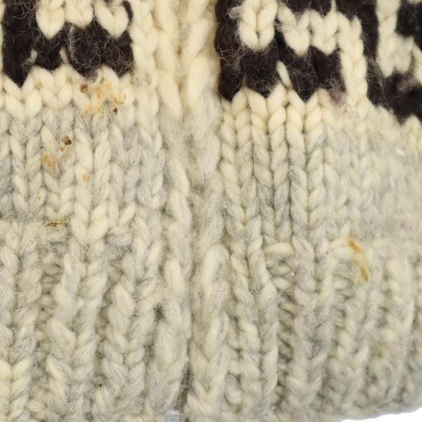 | 詳細 | 90年代のオールドのカウチンになります。全体的に毛羽立ち、袖裾に毛玉があり、前ファスナー下辺りに汚れがあります。サイズ不明です。実寸も参考にお願いします。 |