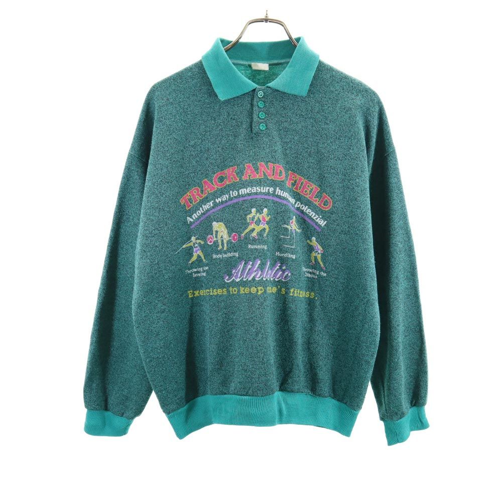 OLD オールド 80s 90s 長袖 ポロシャツ S グリーン系 メンズ