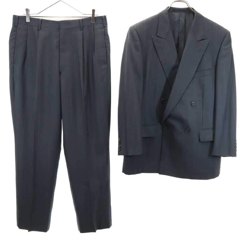 Aquascutum アクアスキュータム 90s 日本製 ウール オールド ストライプ柄 パンツスーツ 上下 セットアップ 94AB4/94A6 グレー系 メンズ