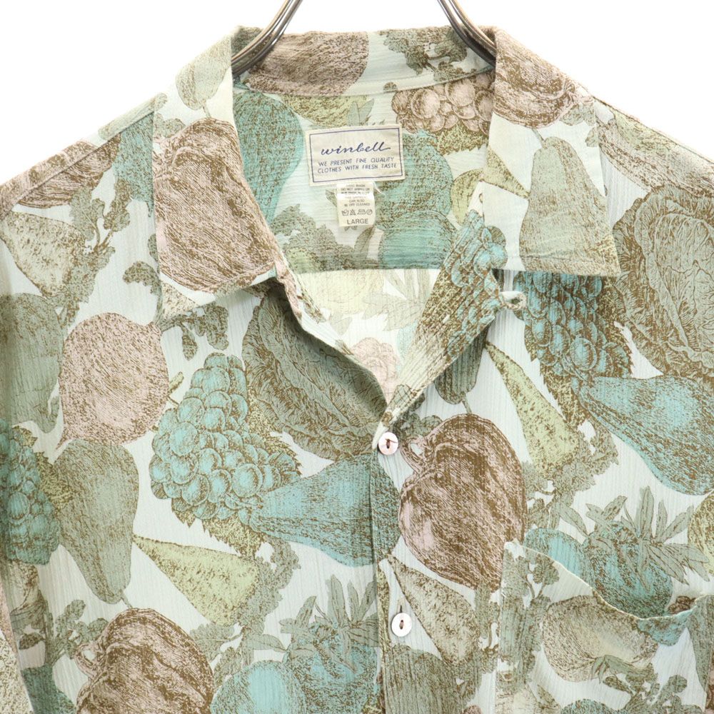 winbell 90s オールド デザイン 総柄 半袖 オープンカラーシャツ L グリーン系 winbell メンズ