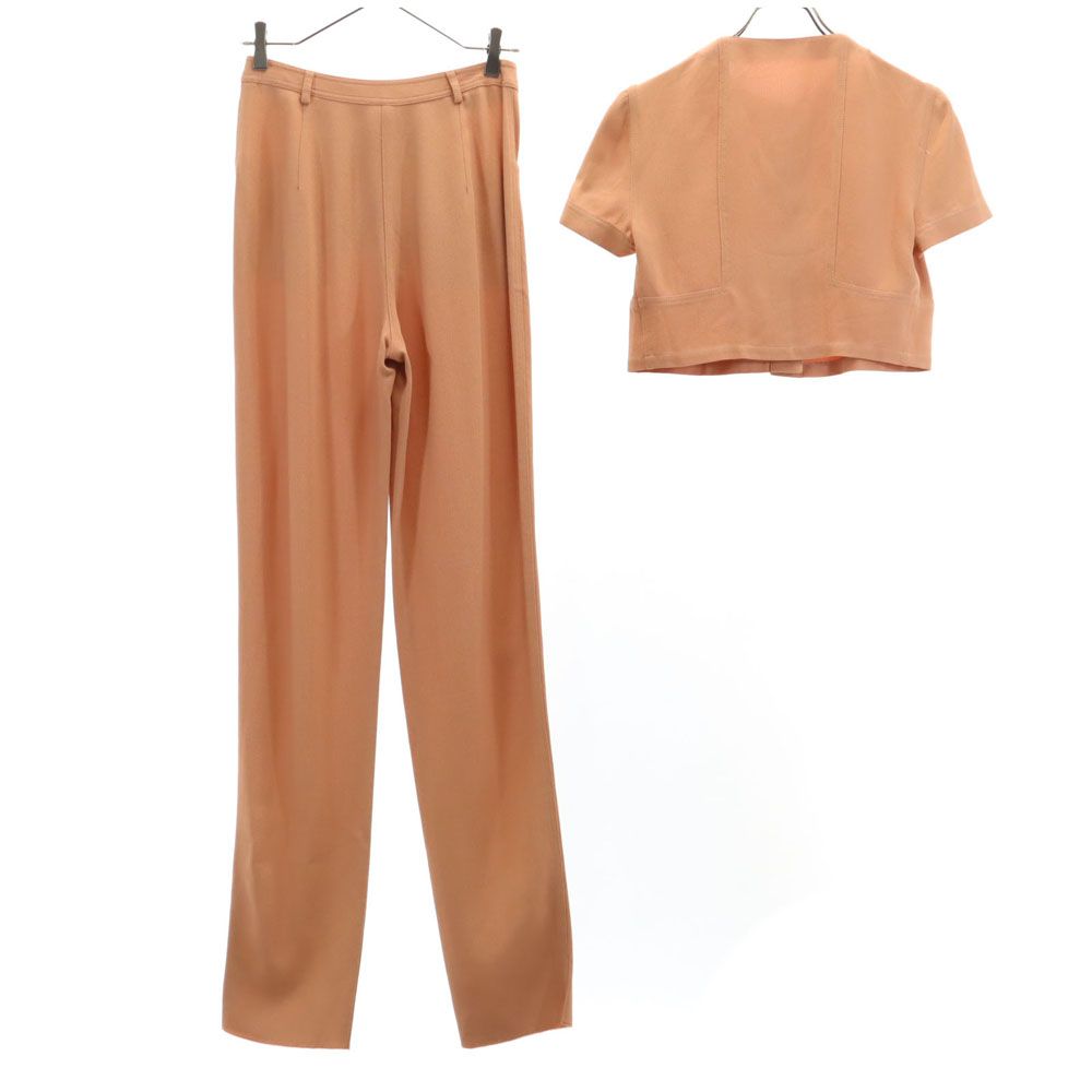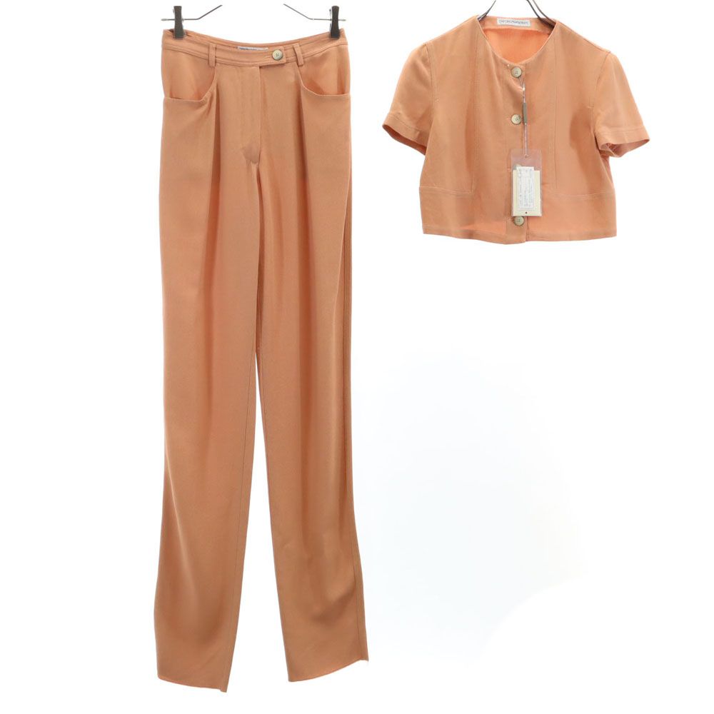 Emporio Armani エンポリオアルマーニ 90s 未使用 イタリア製 半袖 オールド ヴィンテージ パンツスーツ 上下 セットアップ 38/40 ベージュ ロングパンツ タグ付き レディース
