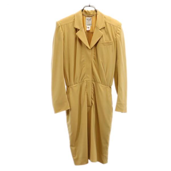 CELINE セリーヌ フランス製 長袖 ワンピース 36 イエロー系 ベルトループ付き レディース