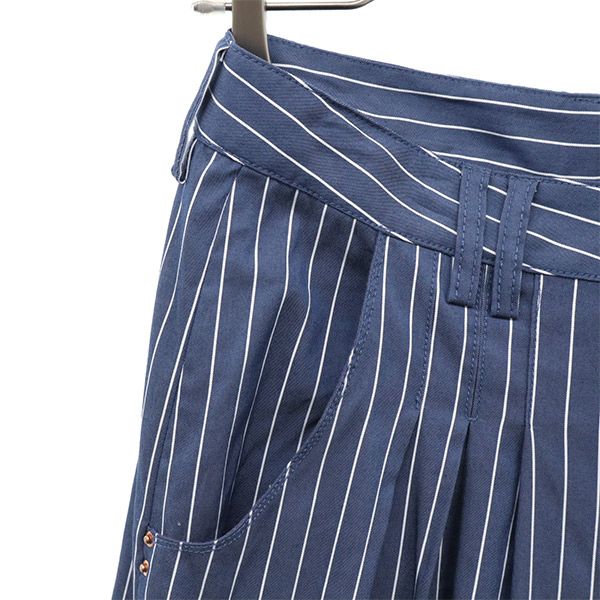 リベットアンドブルー 日本製 ストライプ ガウチョパンツ 1 ブルー×ホワイト Rivet&Blue レディース