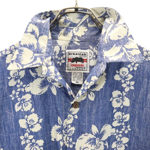 Urbaniak 90s USA製 オールド リバースプリント 半袖 アロハシャツ M 青×白 オープンカラー メンズ