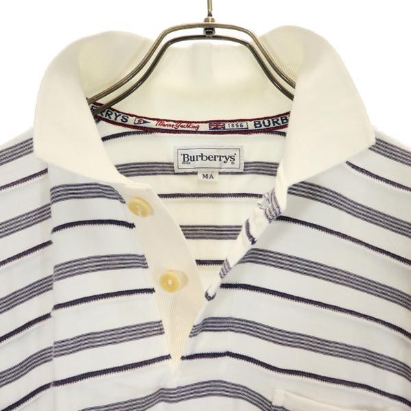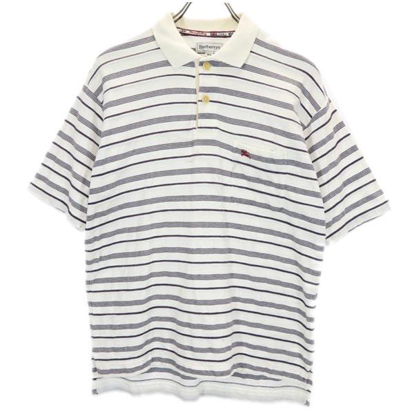 バーバリーズ 90s 日本製 三陽商会 ボーダー系 半袖 ポロシャツ MA 白×グレー Burberrys メンズ