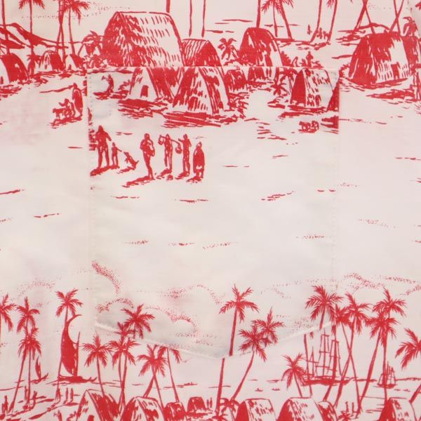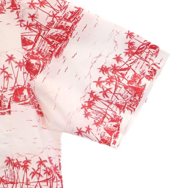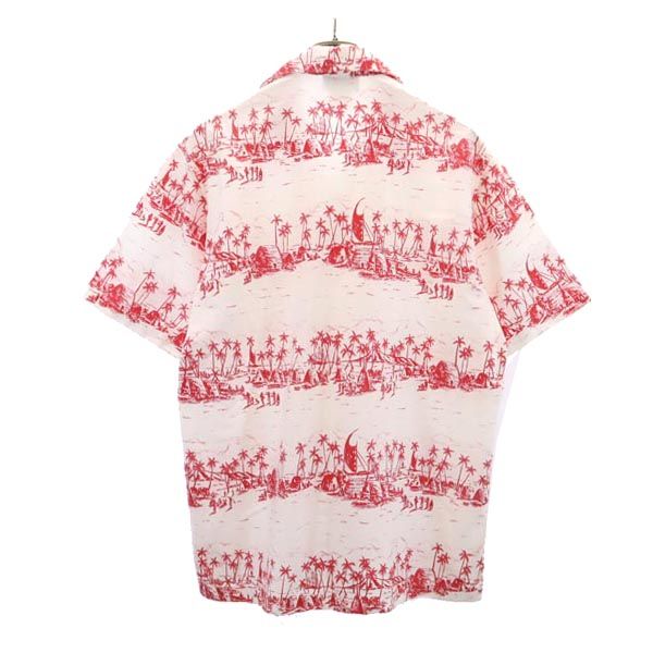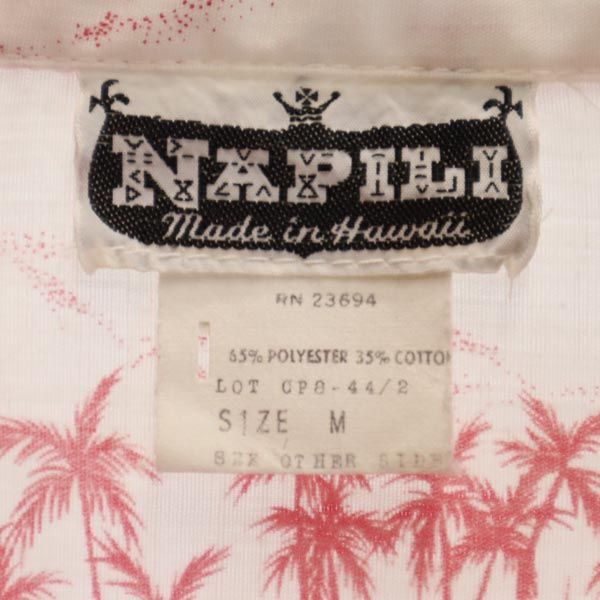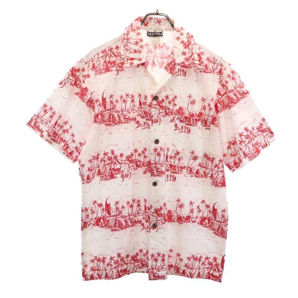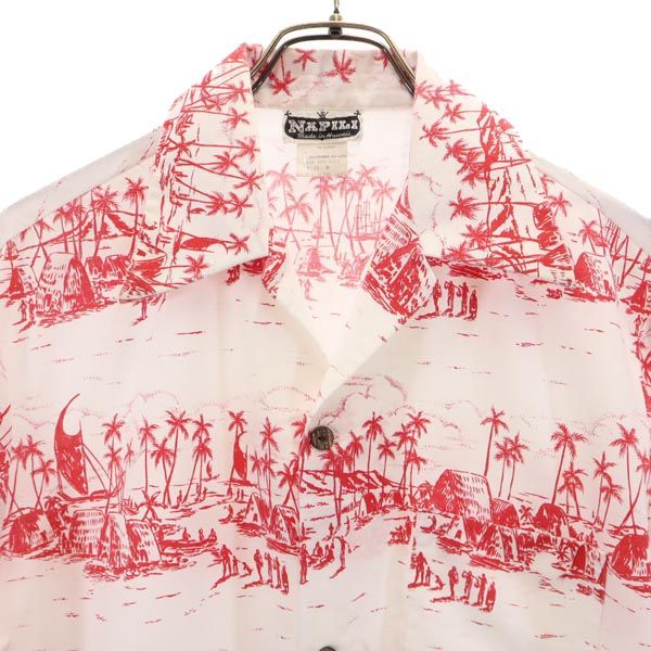 ナピリ 70s 80s ヴィンテージ 総柄 半袖 アロハシャツ M 白×赤 NAPILI オープンカラー メンズ