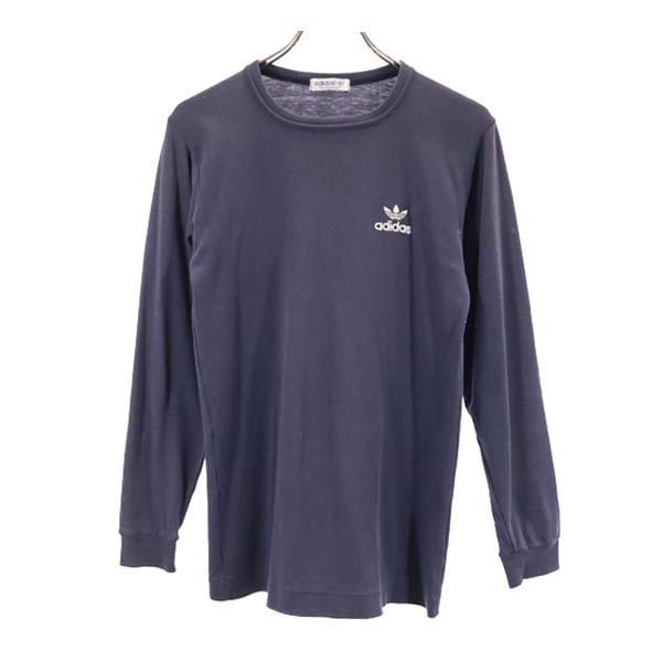 adidas アディダス 80s ヴィンテージ デサント製 ADS-22 トレフォイルロゴ 刺繍 長袖 Tシャツ M 紺 メンズ