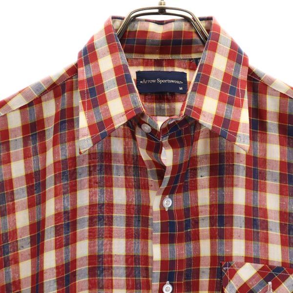 ARROW アロー 80s ヴィンテージ チェック 半袖 シャツ M レッド系 メンズ