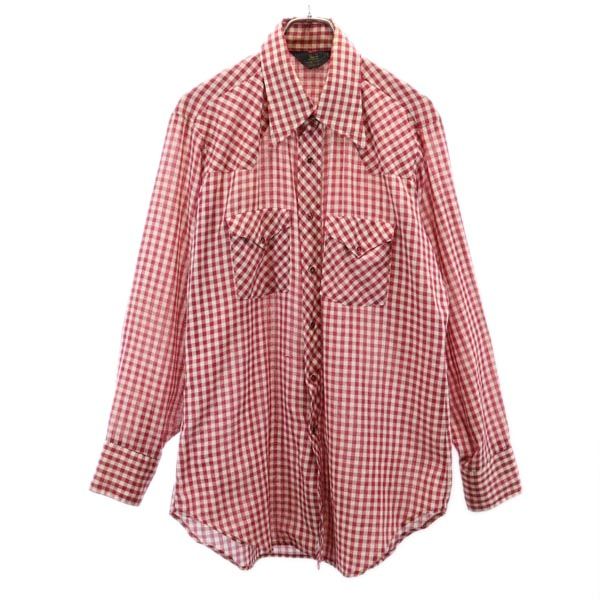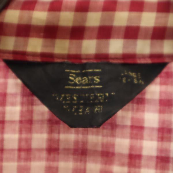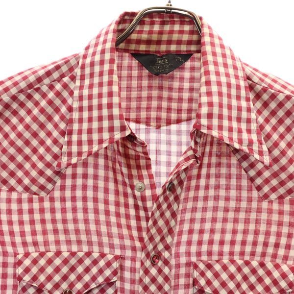 Sears シアーズ 70s ヴィンテージ チェック柄 長袖 ウエスタンシャツ L レッド×ホワイト メンズ