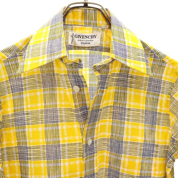 GIVENCHY ジバンシィ 80s ヴィンテージ チェック柄 長袖 シャツ 37 イエロー系 メンズ