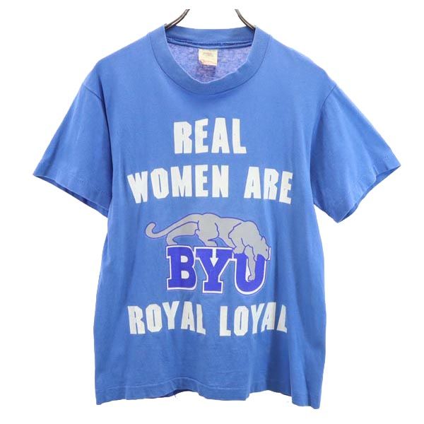 FRUIT OF THE LOOM フルーツオブザルーム 90s オールド USA製 プリント 半袖 Tシャツ S ブルー BYU メンズ