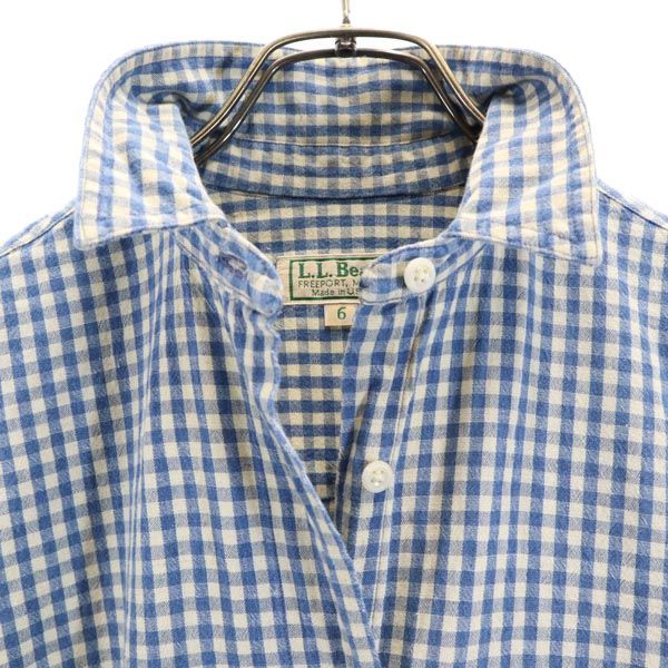 エルエルビーン 80s ヴィンテージ リネンブレンド チェック 長袖 シャツ 6 ブルー系 L.L.Bean レディース