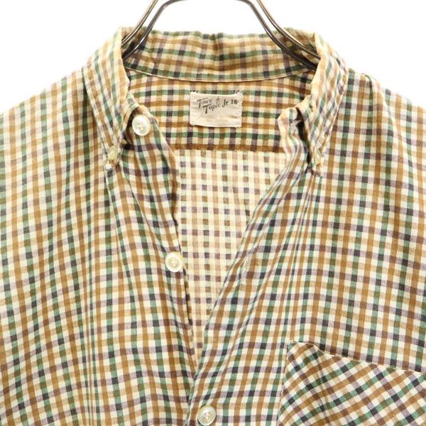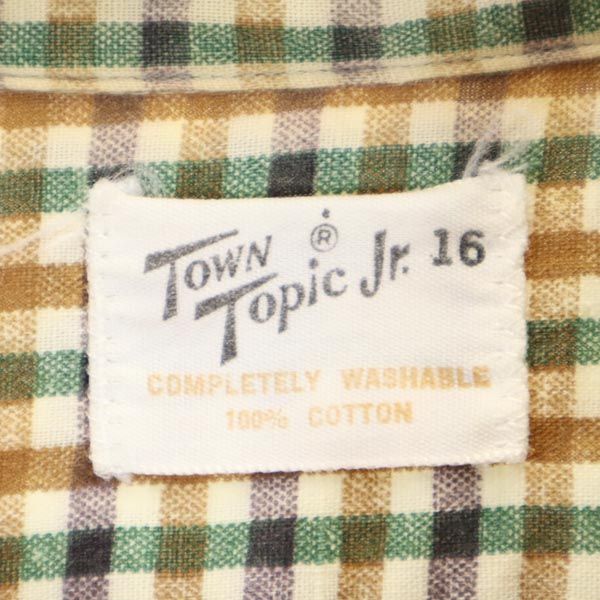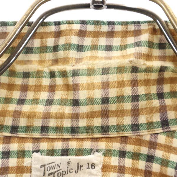 Town Topic 70s 80s ヴィンテージ チェック 長袖 ボタンダウンシャツ 16 ブラウン系 キッズ