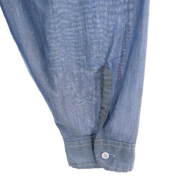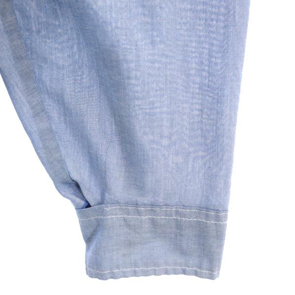 | 詳細 | 80年代のキーのシャンブレーシャツになります。サイズ、素材共に不明です。サイズカテゴリーはおよそで選択しています。実寸も参考にお願いします。襟、袖に汚れ、左袖口がほつれています。袖に所々、伝線が見られます。古着にご理解の上ご購入をお願い致します。 |