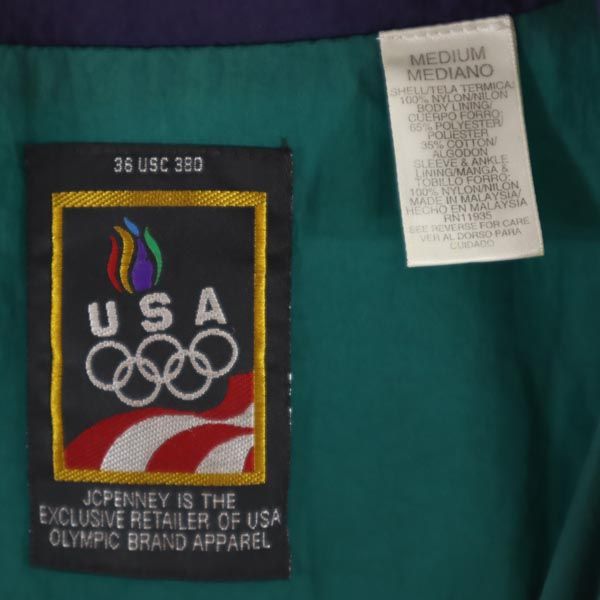 JCPenney ジェイシーペニー 80s ヴィンテージ USAオリンピック 長袖 ナイロンジャケット M グリーン×ボルドー 他 メンズ