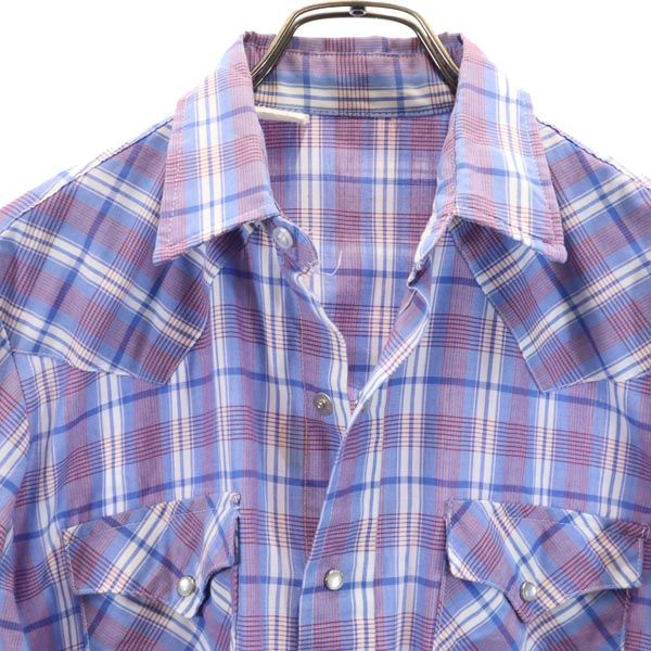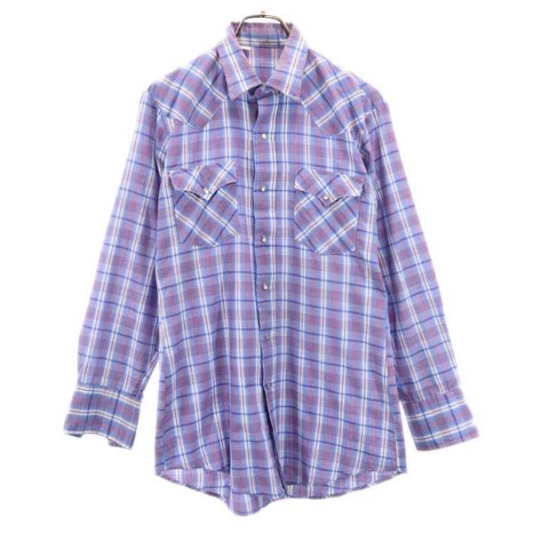 VINTAGE ヴィンテージ 70s 80s チェック 長袖 ウエスタンシャツ ブルー系 メンズ